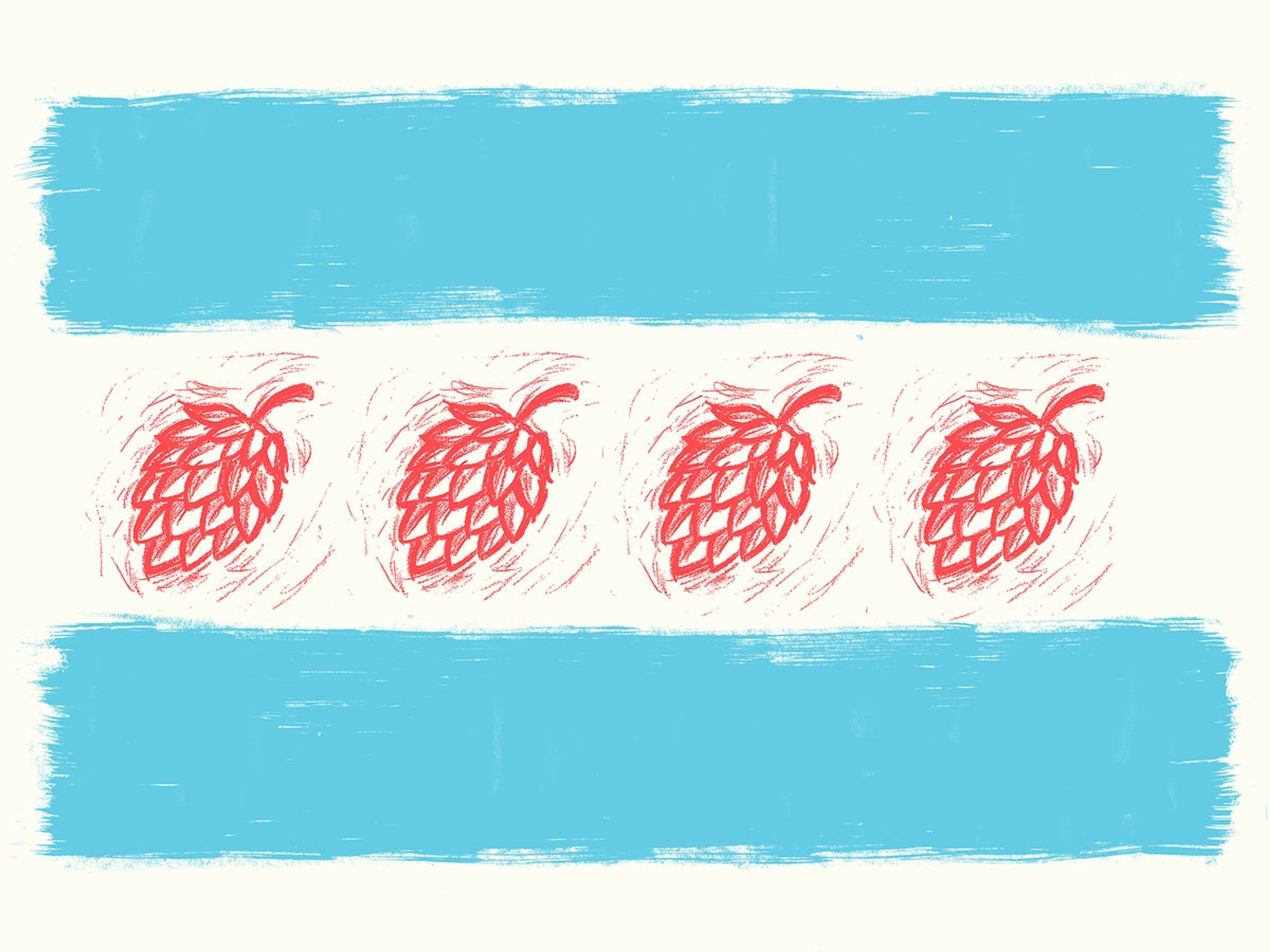 A new Screenprint of the Classic Chicago Flag, made in honor of the mighty Hop used to such great effect by the brewers of our city. 18 x 24 inches, signed.