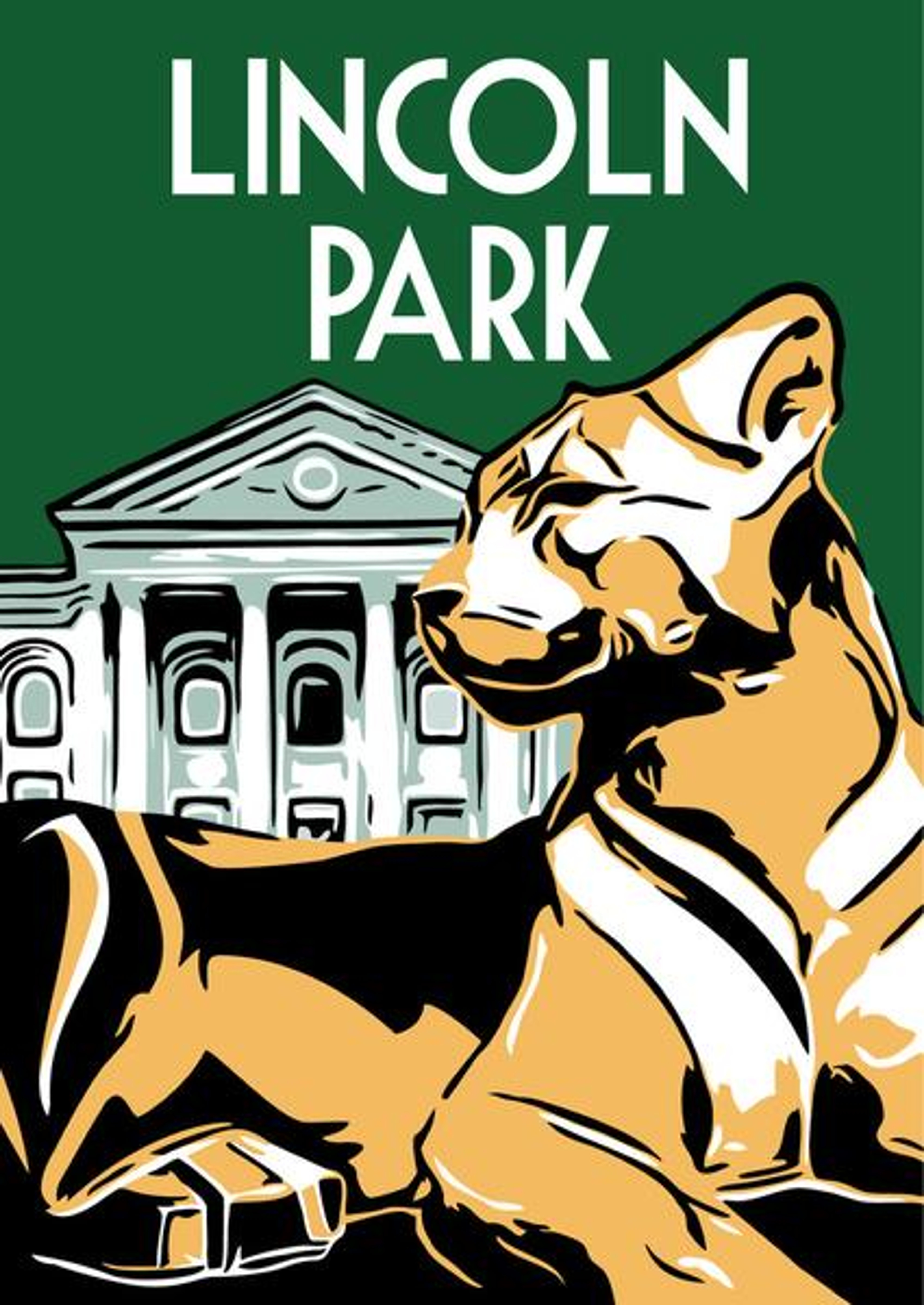 The ornamentation on Lincoln Square's bronze, multi-tiered fountain was inspired by the work of architect Louis Sullivan. Printed on uncoated French Paper Company, recycled 100lb cover stock. Actual artwork measures 15x21" with a 1 1/2" border on all sides.