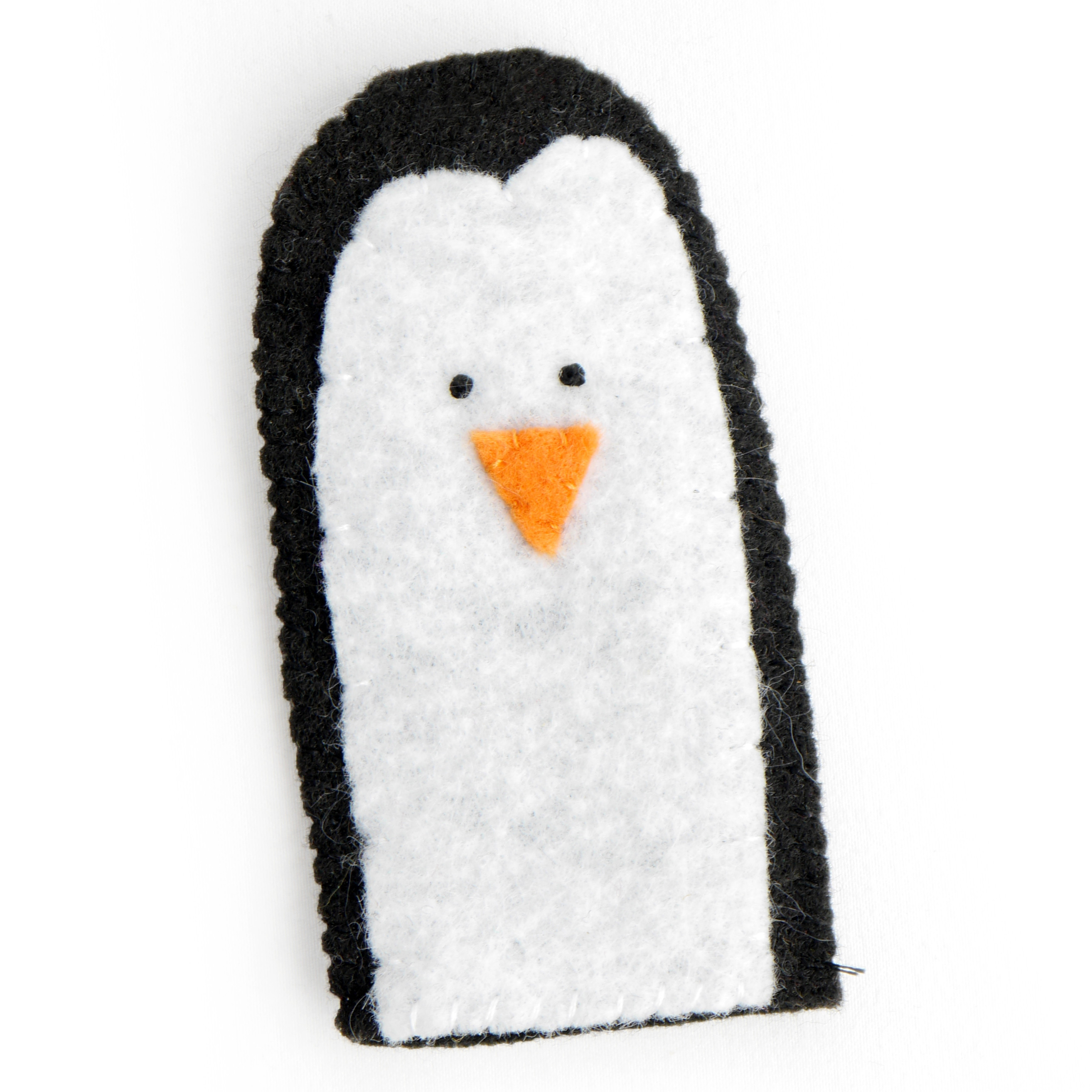 This little penguin is completely hand stitched. He measures about 4 inches tall and 3 1/2 inches wide. He hangs from white satin ribbon.