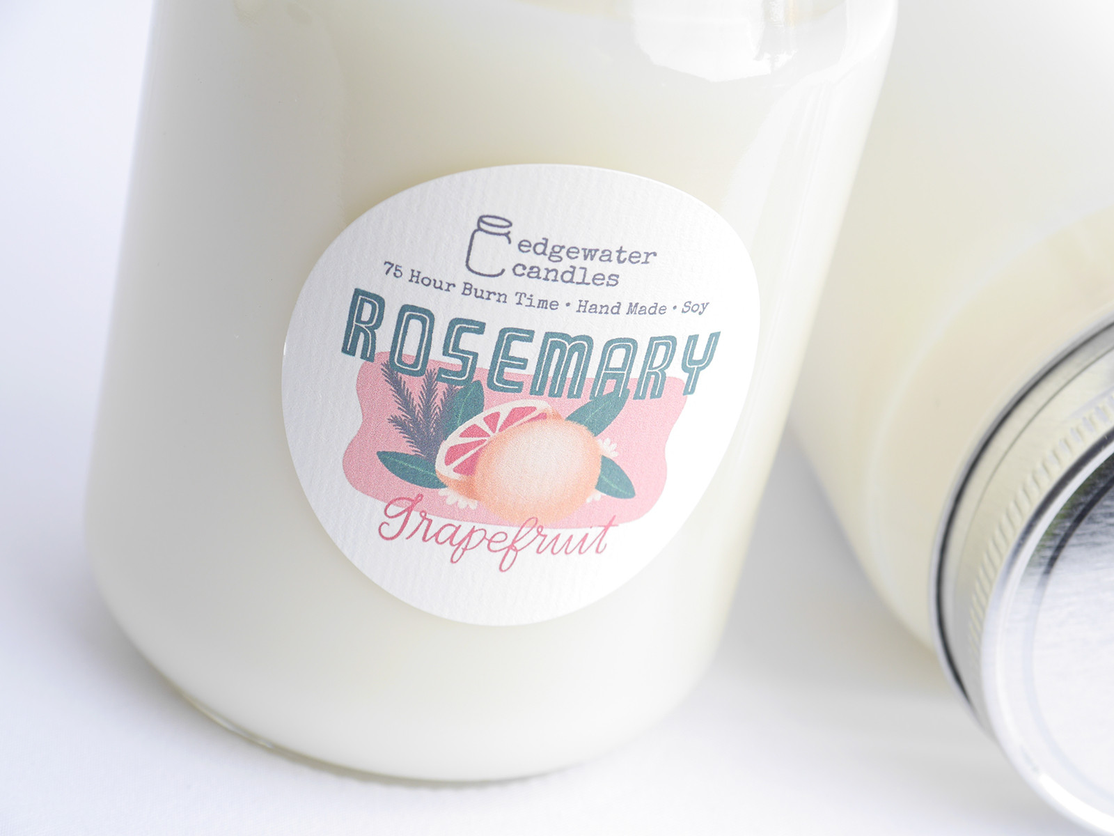 This fragrance gets its bright burst from the essential oils of perfectly sweet, perfectly bitter grapefruit peels and an entourage of hints of lime and orange. The citrus medley boldly announces its arrival and opens the door for their more subdued, delicate herbal companion, Rosemary, for an unlikely but satisfyingly refreshing combination. These 12oz soy candles are hand poured in small batches, and burn for approximately 75 hours.